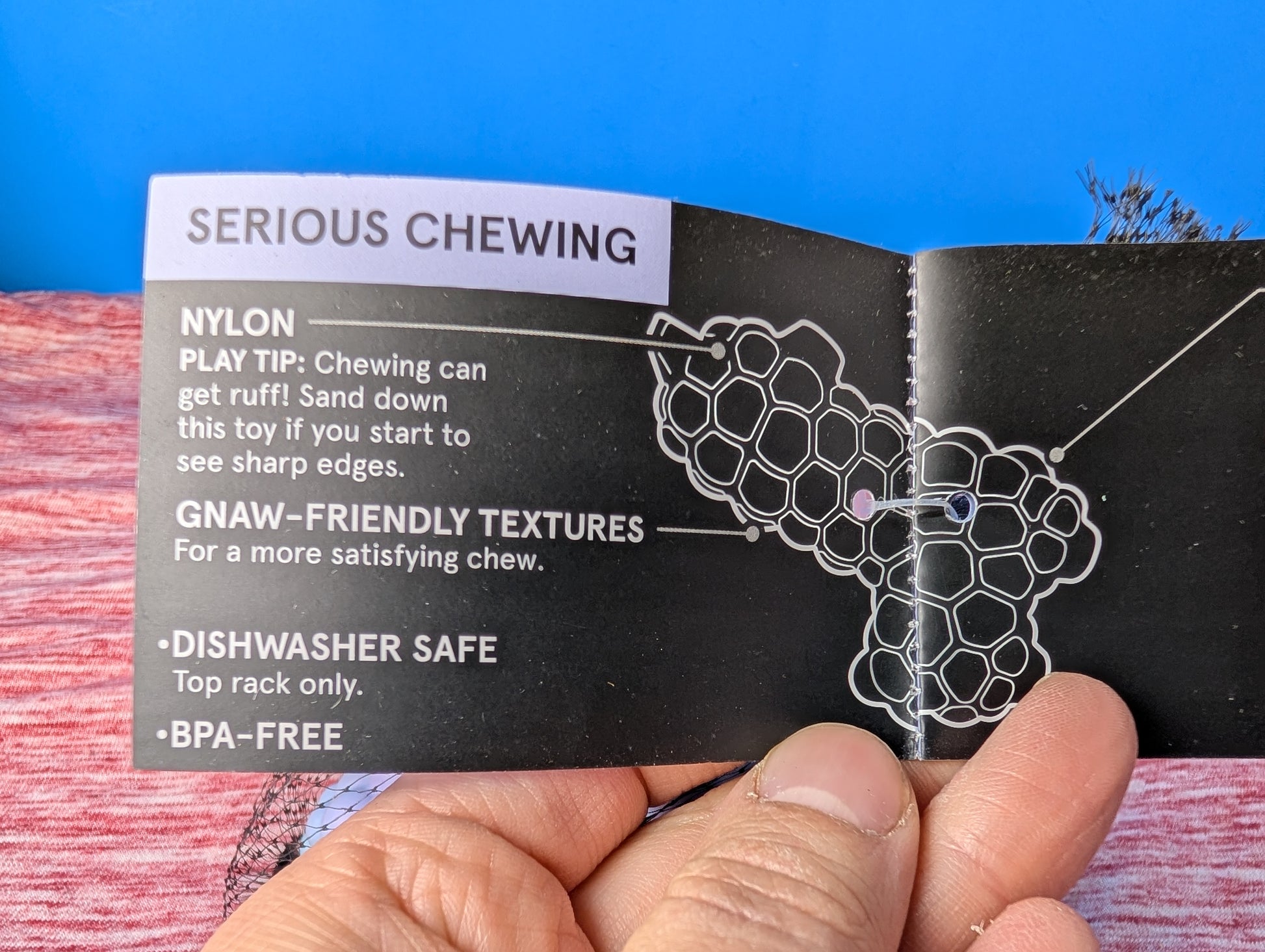Super chewer, nylon, dishwasher safe, vanilla scent