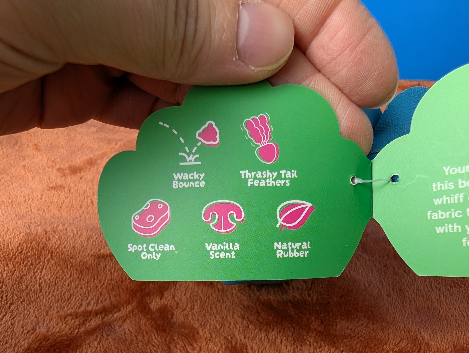 Super chewer, rubber, vanilla scent, wacky bounce