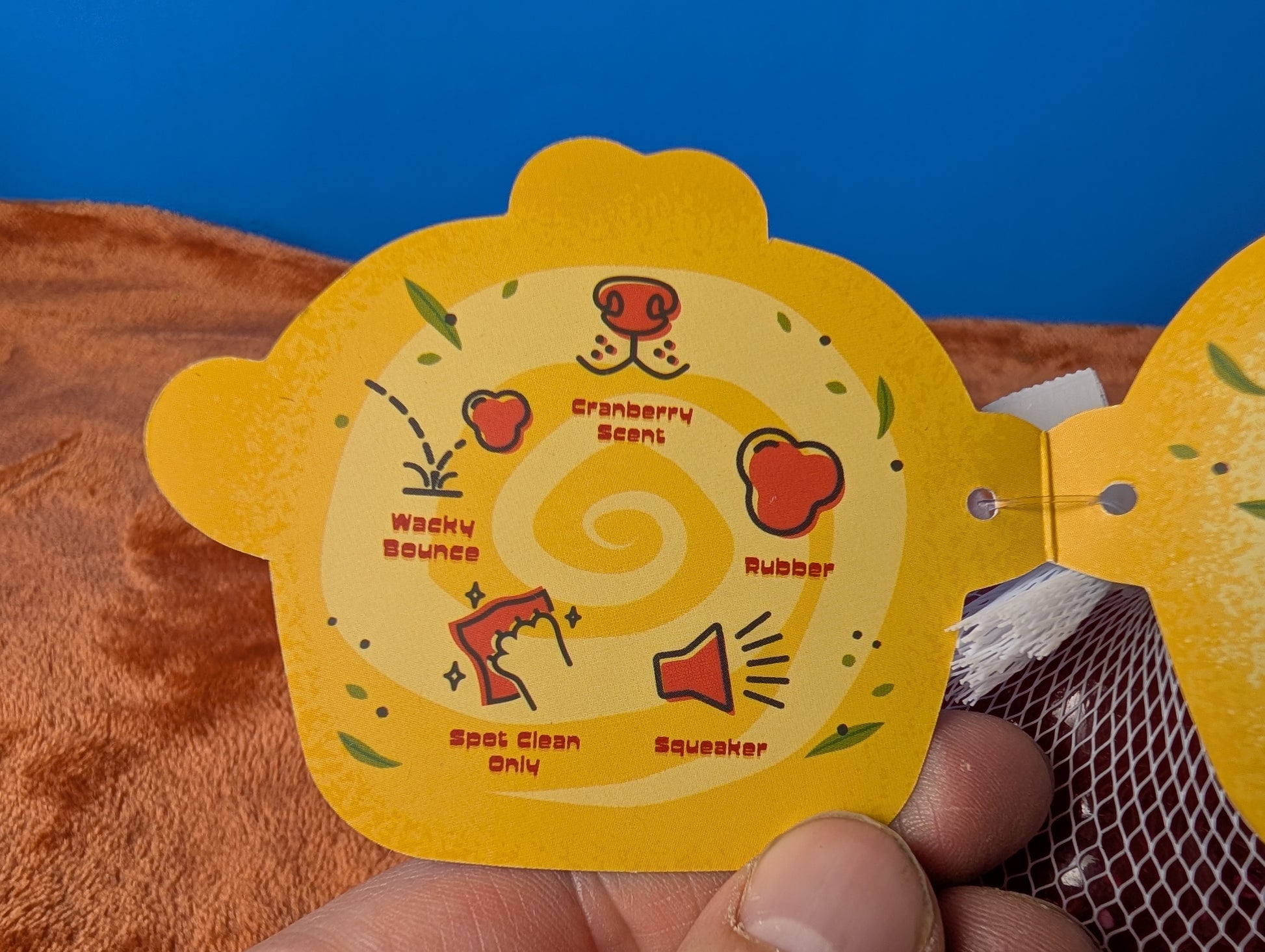 Super chewer, rubber, squeaker, cranberry scent, wacky bounce