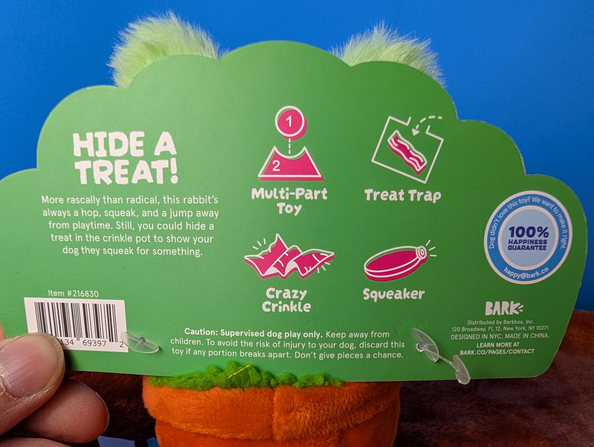 Disclaimer: Wesley's Treasures is not associated, authorized, endorsed by, or in any way officially connected with BarkBox. The names "Hana the Hippie Hopper", "BarkBox", "Bark" as well as related names, marks, emblems and images are registered trademarks of their respective owners. Wesley's Treasures stands independently as a seller of secondhand items.