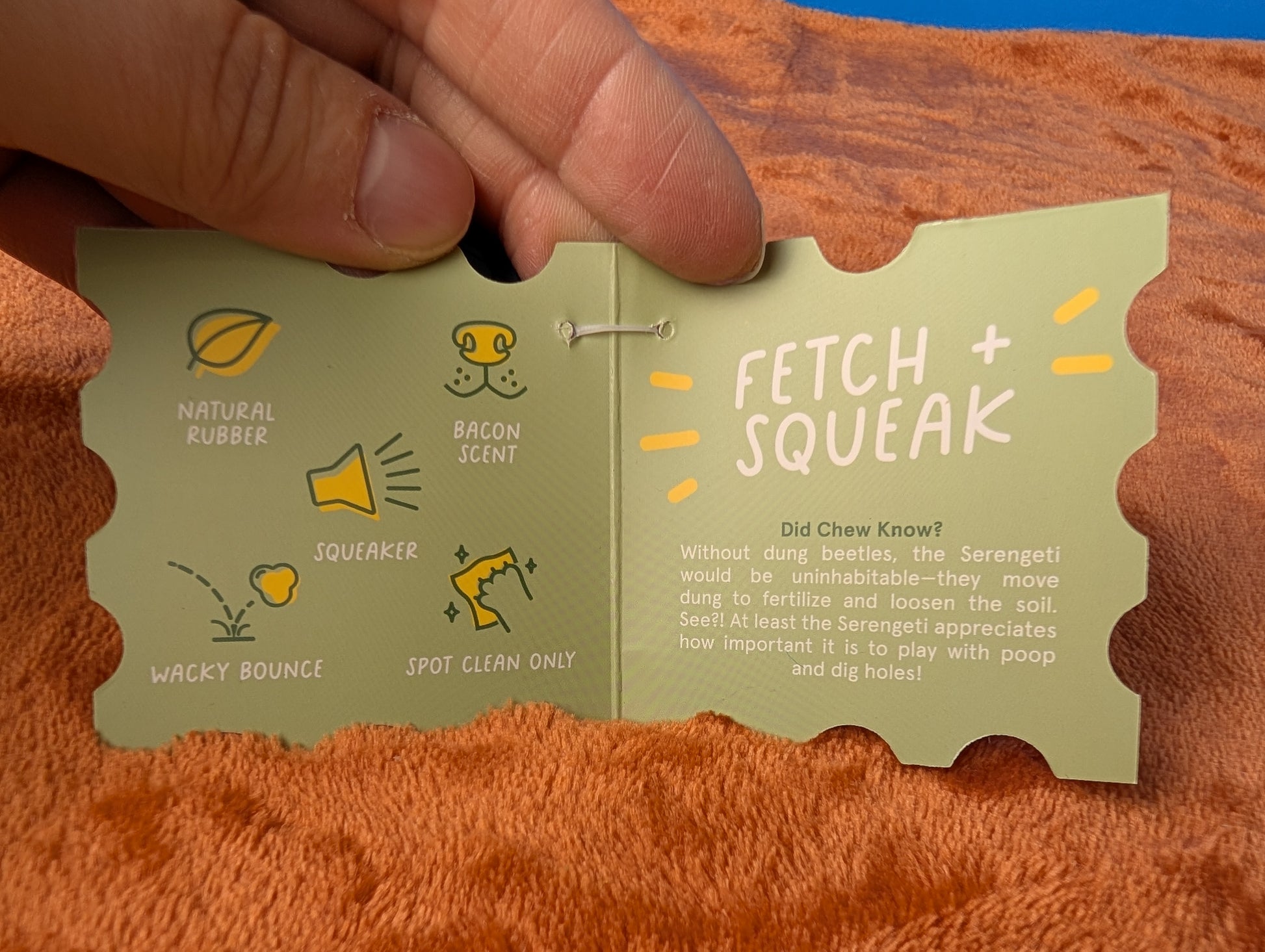 Super chewer, rubber, squeaker, bacon scent, wacky bounce