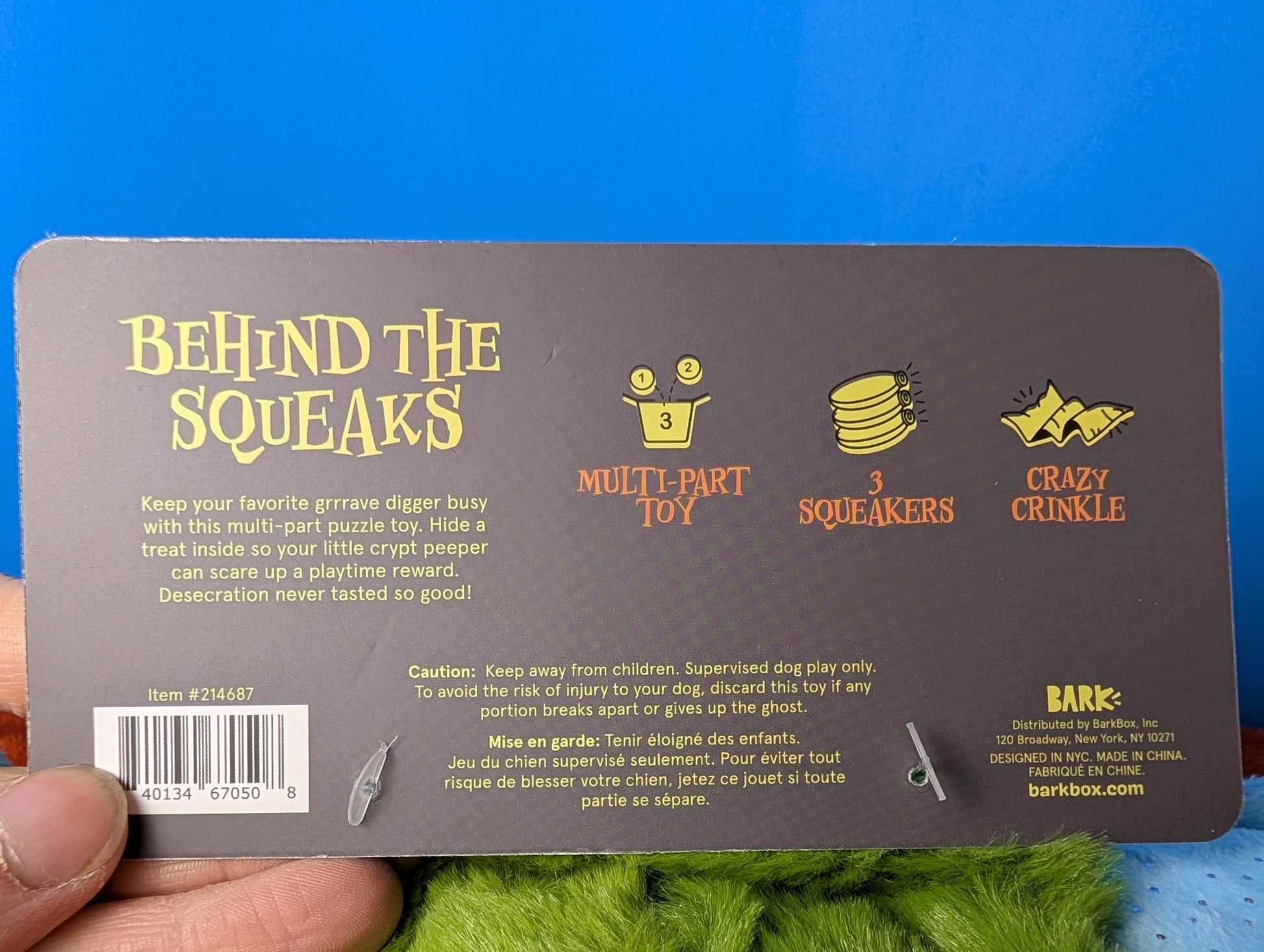 Disclaimer: Wesley's Treasures is not associated, authorized, endorsed by, or in any way officially connected with BarkBox. The names "Now You See 'Em Mausoleum ", "BarkBox", "Bark" as well as related names, marks, emblems and images are registered trademarks of their respective owners. Wesley's Treasures stands independently as a seller of secondhand items.