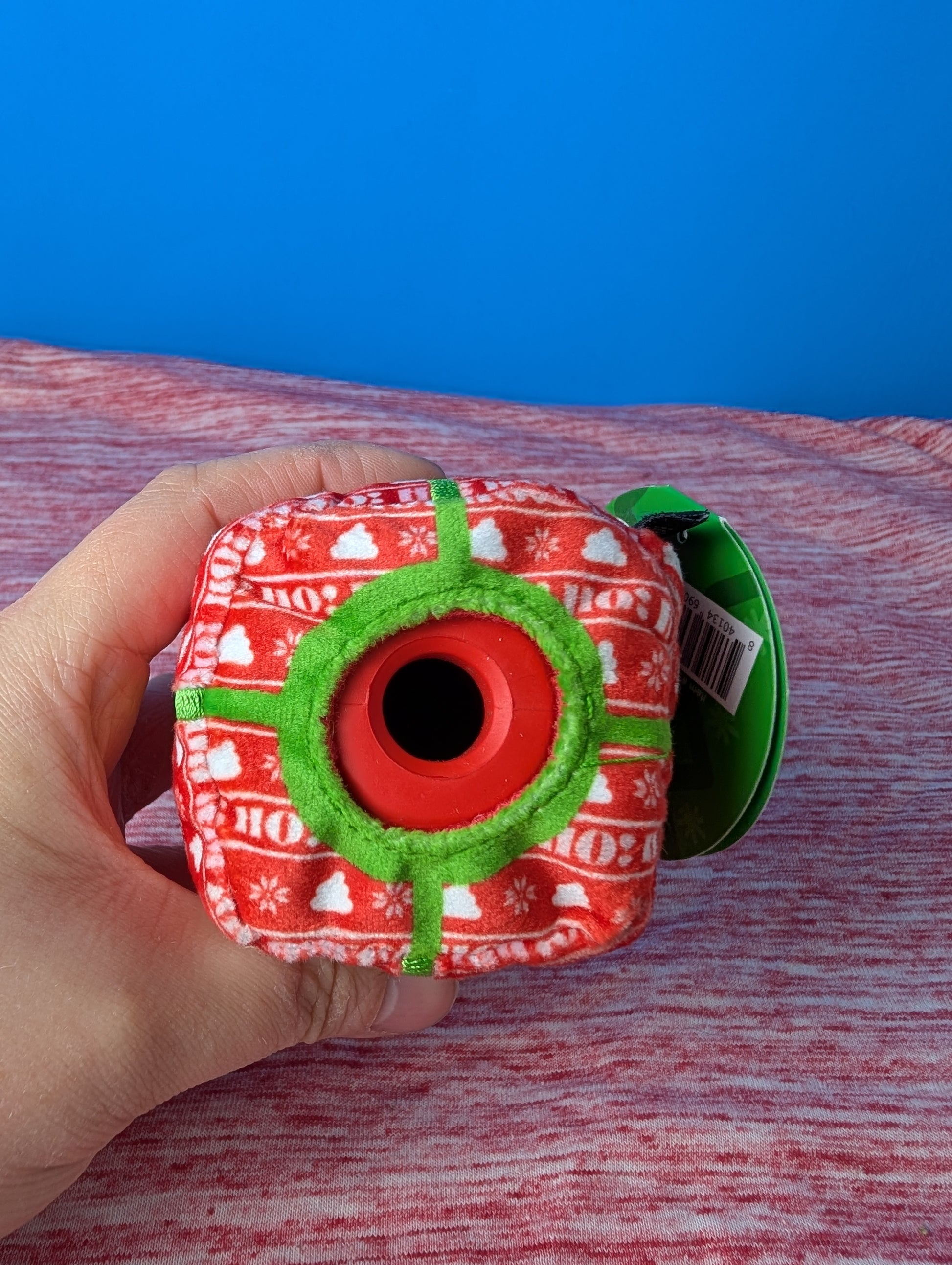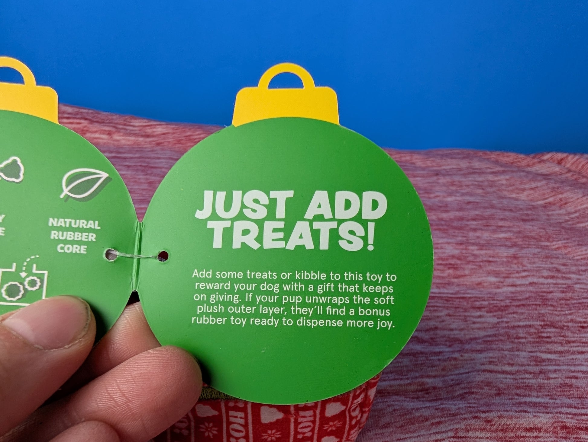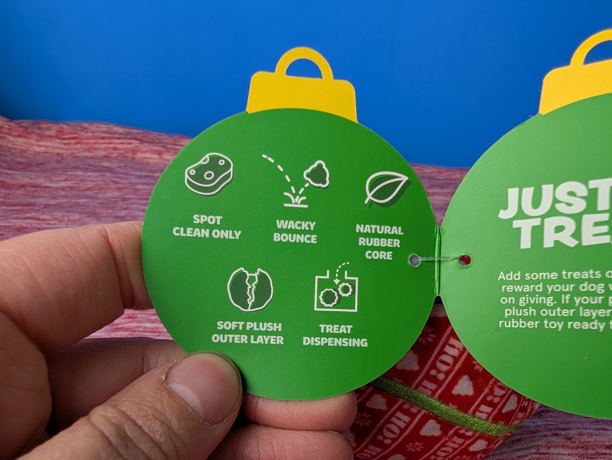 Super chewer, treat dispensing, rubber, fabric covering, wacky bounce, spot clean only