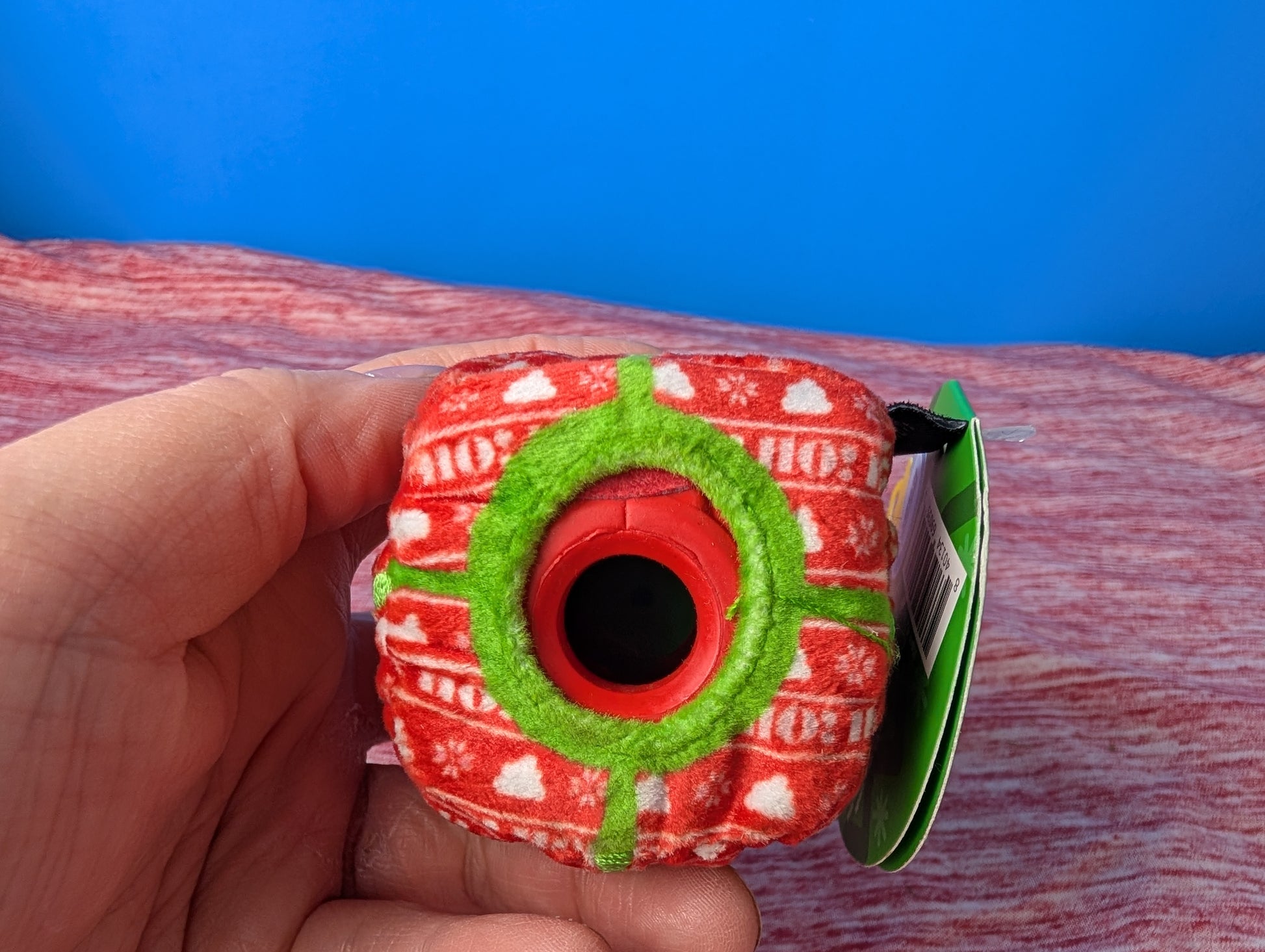 Super chewer, treat dispensing, rubber, fabric covering, wacky bounce, spot clean only