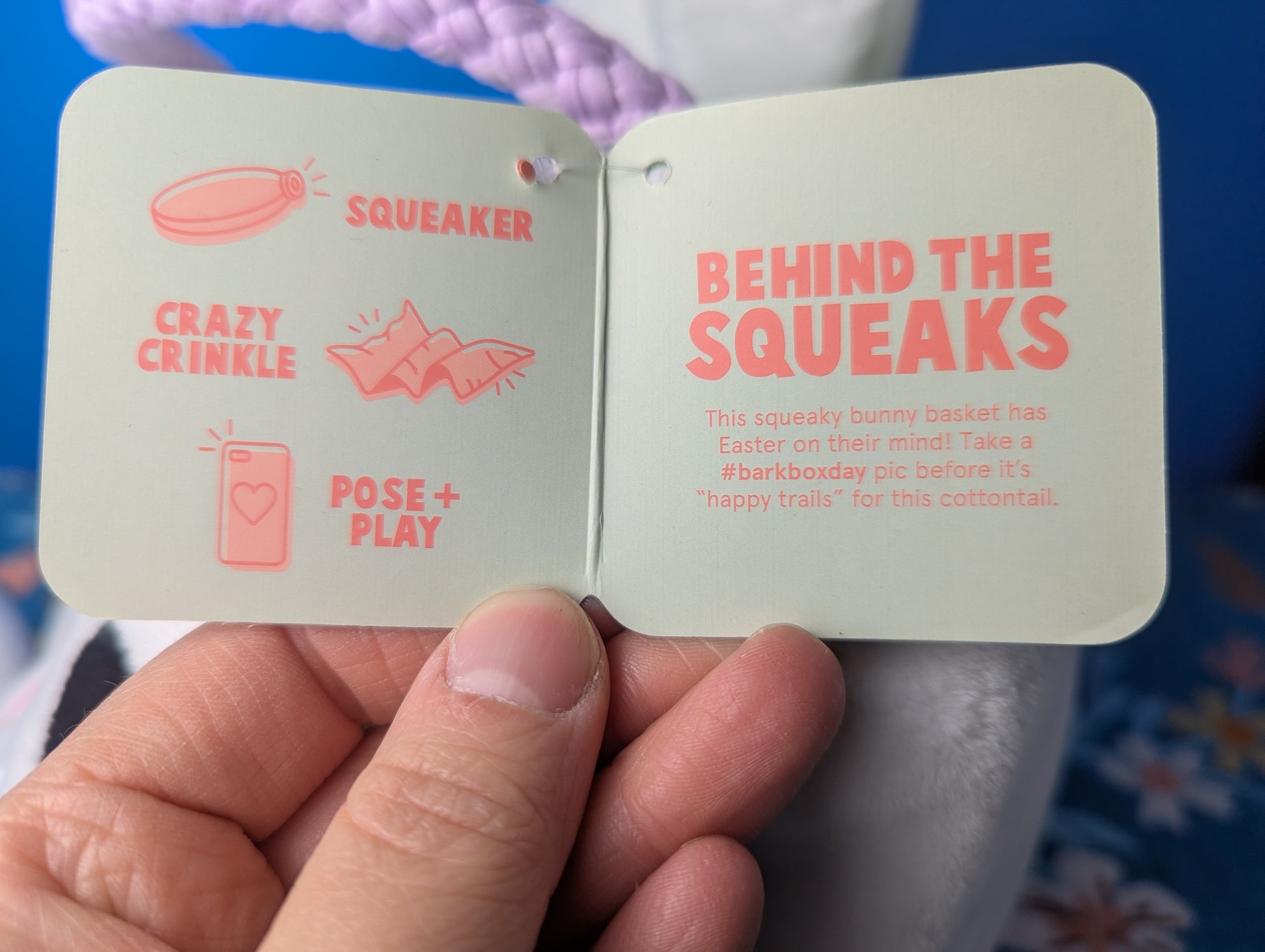 Disclaimer: Wesley's Treasures is not associated, authorized, endorsed by, or in any way officially connected with BarkBox. The names "Squeakster Bunny Basket", "BarkBox", "Bark" as well as related names, marks, emblems and images are registered trademarks of their respective owners. Wesley's Treasures stands independently as a seller of secondhand items.