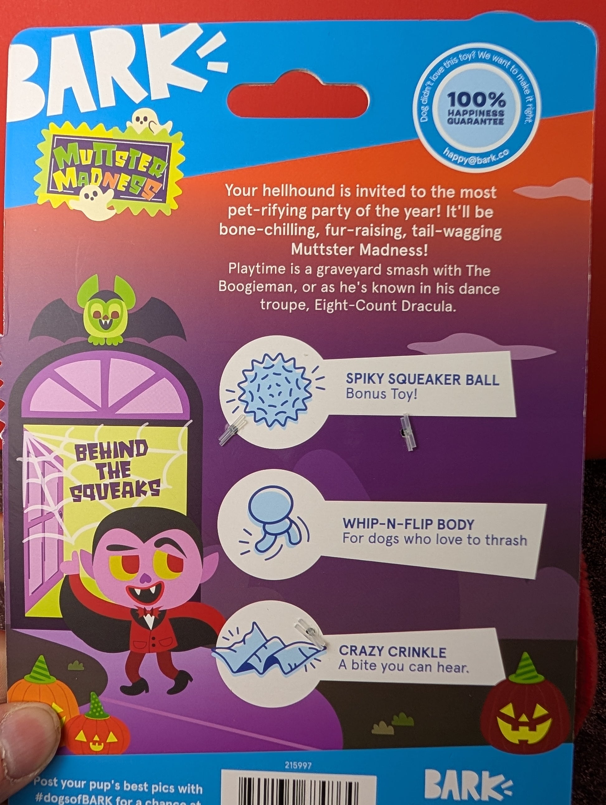 Disclaimer: Wesley's Treasures is not associated, authorized, endorsed by, or in any way officially connected with BarkBox. The names "The Boogieman ", "BarkBox", "Bark" as well as related names, marks, emblems and images are registered trademarks of their respective owners. Wesley's Treasures stands independently as a seller of secondhand items.