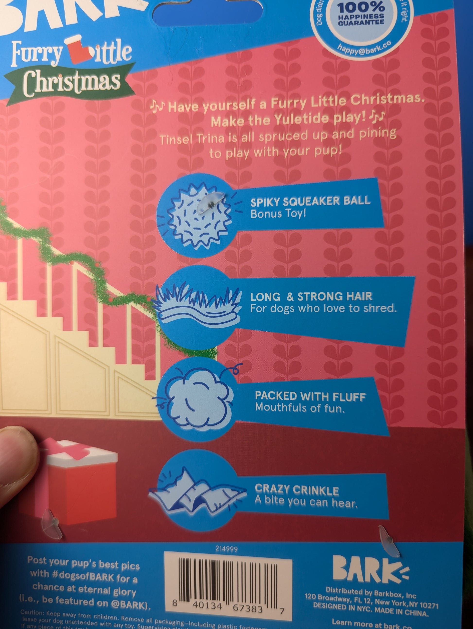 Disclaimer: Wesley's Treasures is not associated, authorized, endorsed by, or in any way officially connected with BarkBox. The names "Tinsel Trina ", "BarkBox", "Bark" as well as related names, marks, emblems and images are registered trademarks of their respective owners. Wesley's Treasures stands independently as a seller of secondhand items.